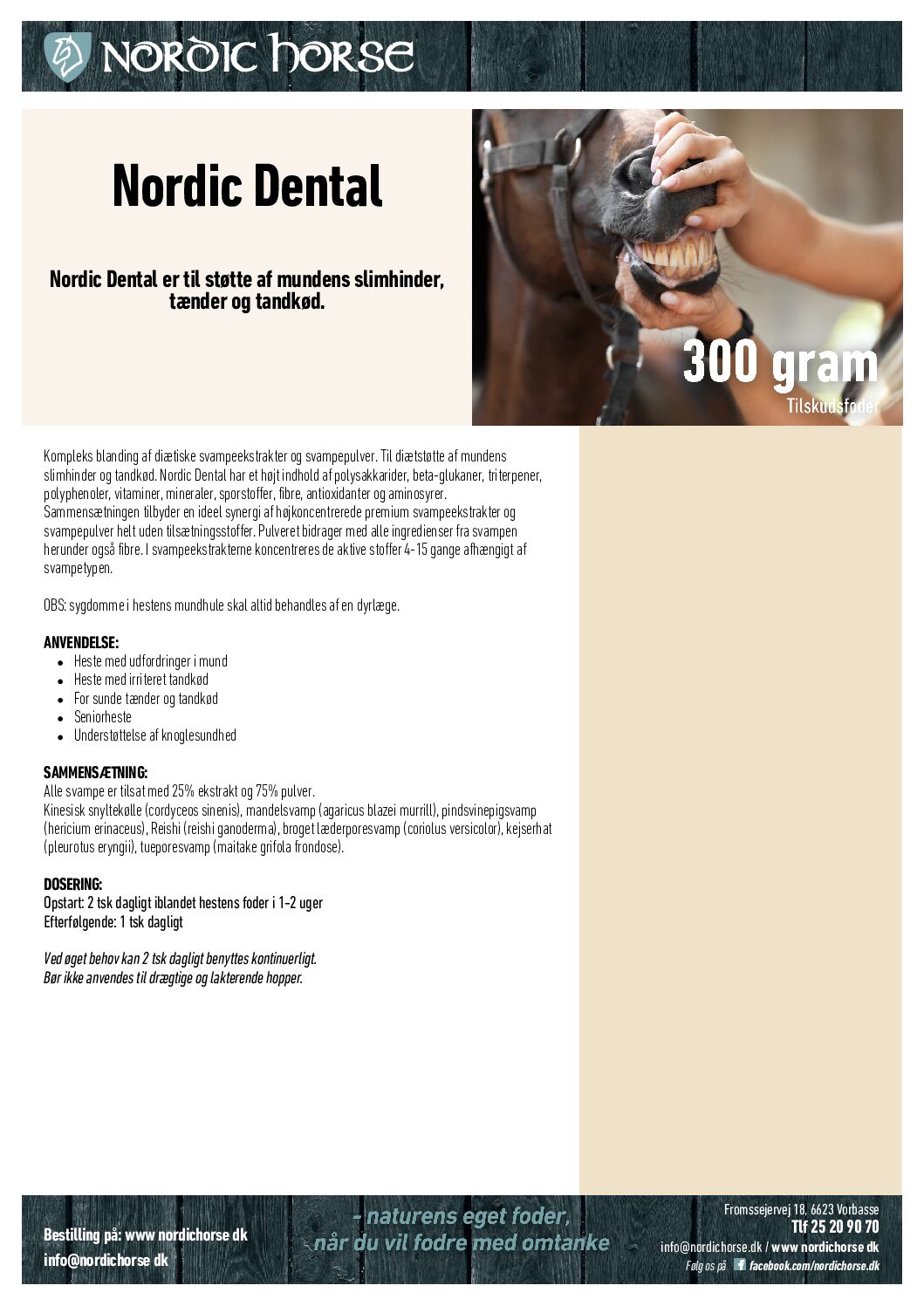 Nordic Dental er kompleks blanding af diætiske svampeekstrakter og svampepulver, som har postiv effekt på støtte af mundens slimhinder og tandkød.